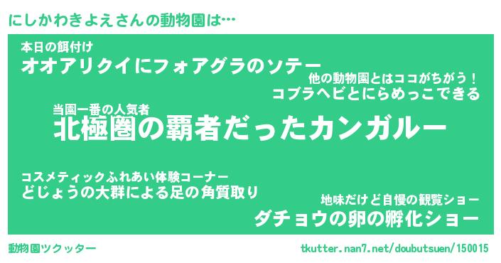 | 2回繰り返すあだ名 | 『にしにし』『ににしし』『くたくた』 |