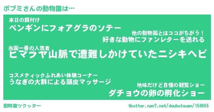 | 2回繰り返すあだ名 | 『ボブボブ』『ボボブブ』『うろうろ』 |