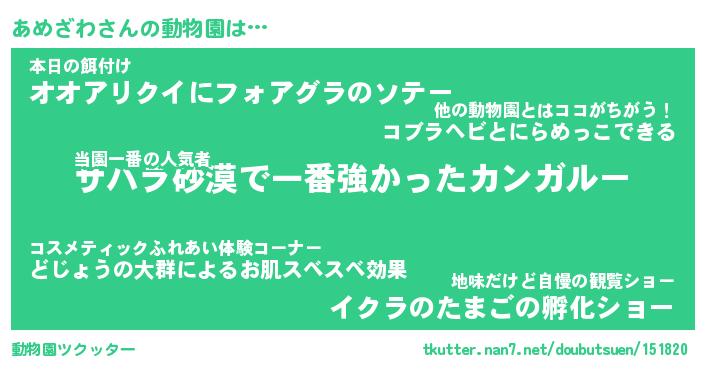 | 2回繰り返すあだ名 | 『あめあめ』『ああめめ』『ねとねと』 |