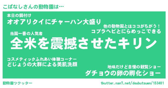 | 2回繰り返すあだ名 | 『こばこば』『ここばば』『ごーごー』 |