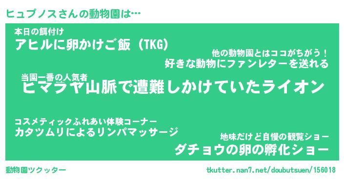 | 料理風あだ名 | 『節約★ヒュプノスと油揚げの玉子丼』 |