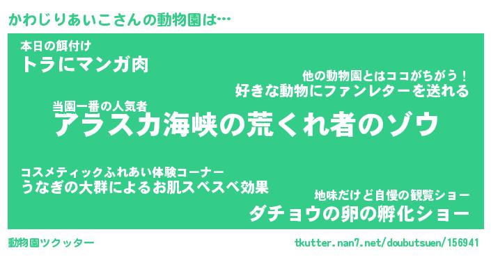 | 2回繰り返すあだ名 | 『かわかわ』『かかわわ』『ぐねぐね』 |
