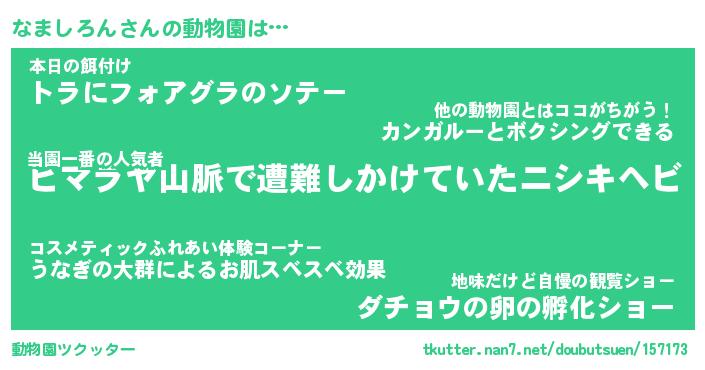 | 2回繰り返すあだ名 | 『なまなま』『ななまま』『いらいら』 |