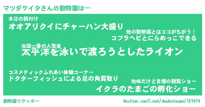 | 肩書あだ名 | 『マツダケイタ社長』『マツダケイタ団長』 |