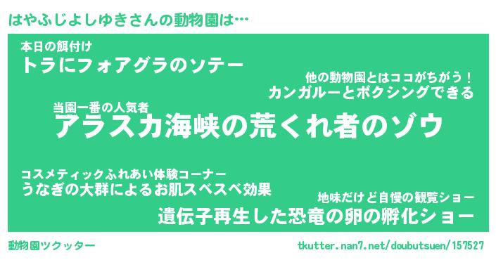 | 胡散臭い通販商品みたいなあだ名 | 『モテモテ間違いなし水晶球…その名も「はやふじよしゆき」』 |