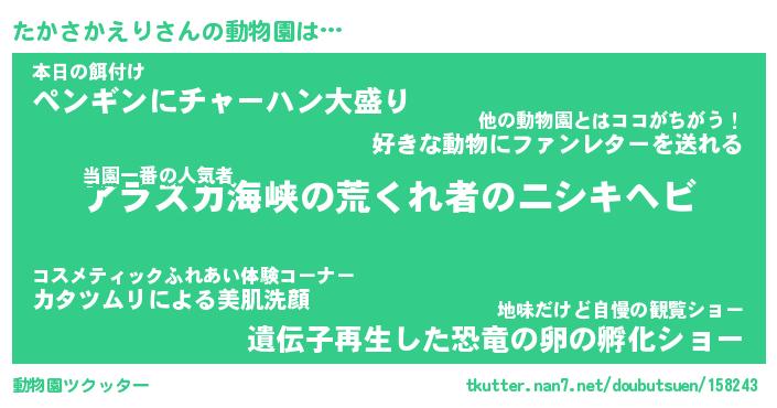 | 2回繰り返すあだ名 | 『たかたか』『たたかか』『ぬれぬれ』 |