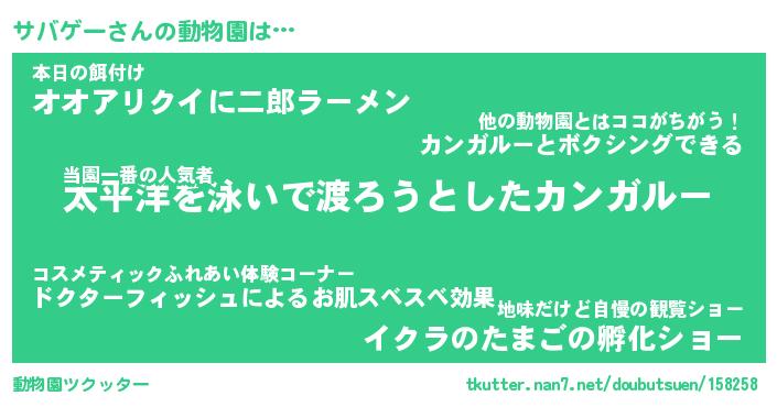 | 2回繰り返すあだ名 | 『サバサバ』『ササババ』『ぴんぴん』 |