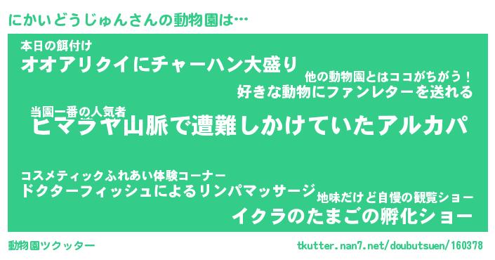 | ツイッター | にかいどうじゅんさんのツイッターID『namakemono_kun』 |