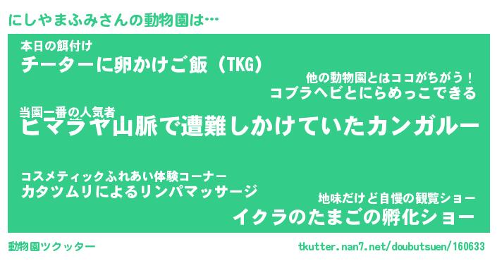 | 2回繰り返すあだ名 | 『にしにし』『ににしし』『うろうろ』 |