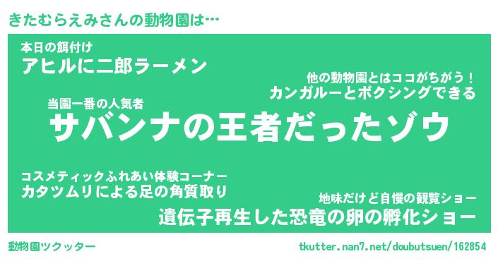 | 2回繰り返すあだ名 | 『きたきた』『ききたた』『ぬれぬれ』 |
