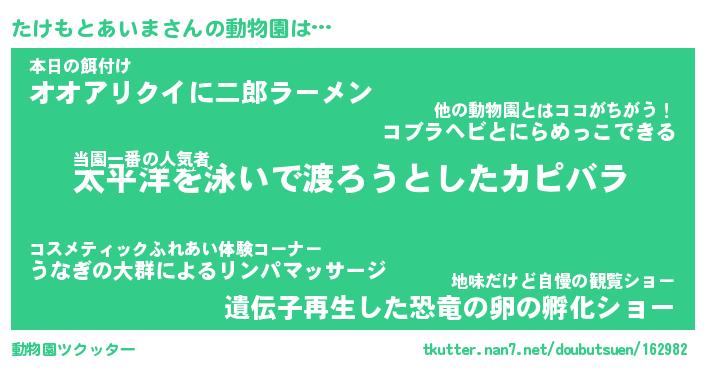 | 2回繰り返すあだ名 | 『たけたけ』『たたけけ』『ぬれぬれ』 |