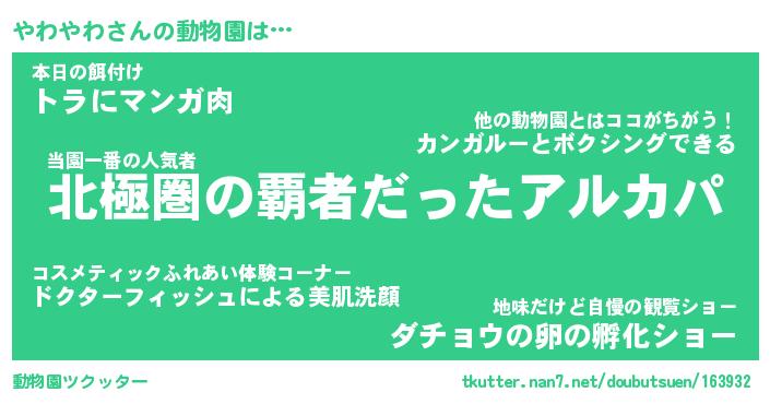 | 2回繰り返すあだ名 | 『やわやわ』『ややわわ』『なあなあ』 |