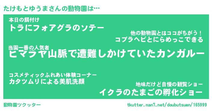 | 2回繰り返すあだ名 | 『たけたけ』『たたけけ』『おやおや』 |