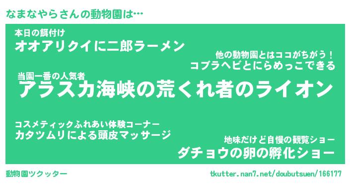 | 2回繰り返すあだ名 | 『なまなま』『ななまま』『なあなあ』 |
