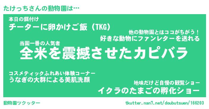 | 2回繰り返すあだ名 | 『たけたけ』『たたけけ』『おやおや』 |