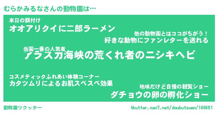 | 2回繰り返すあだ名 | 『むらむら』『むむらら』『からから』 |