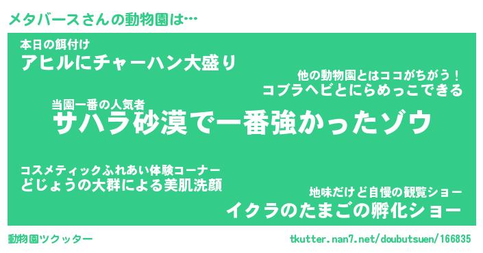 | 2回繰り返すあだ名 | 『メタメタ』『メメタタ』『おやおや』 |