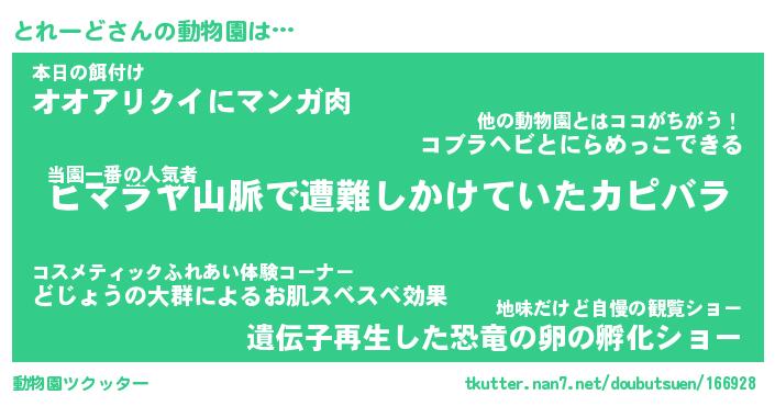 | 2回繰り返すあだ名 | 『とれとれ』『ととれれ』『げこげこ』 |