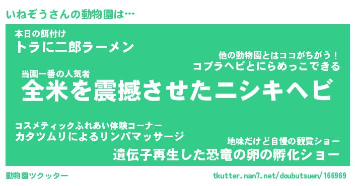 | ツイッター | いねぞうさんのツイッターID『namakemono_star』 |