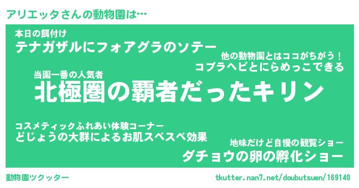 | 男性向けラノベタイトル風あだ名 | 『アリエッタの憂鬱』 |