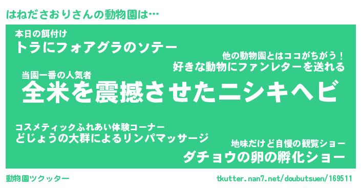 | 2回繰り返すあだ名 | 『はねはね』『ははねね』『ぬらぬら』 |