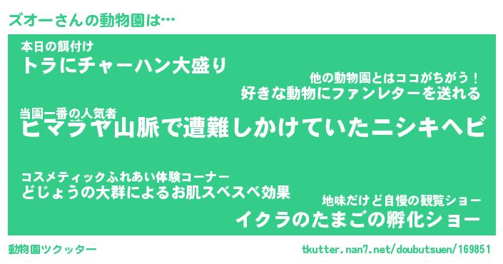 | 2回繰り返すあだ名 | 『ズオズオ』『ズズオオ』『おやおや』 |