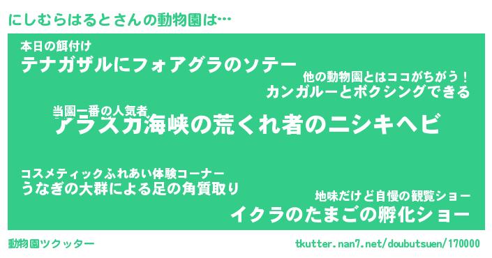 | 2回繰り返すあだ名 | 『にしにし』『ににしし』『おたおた』 |