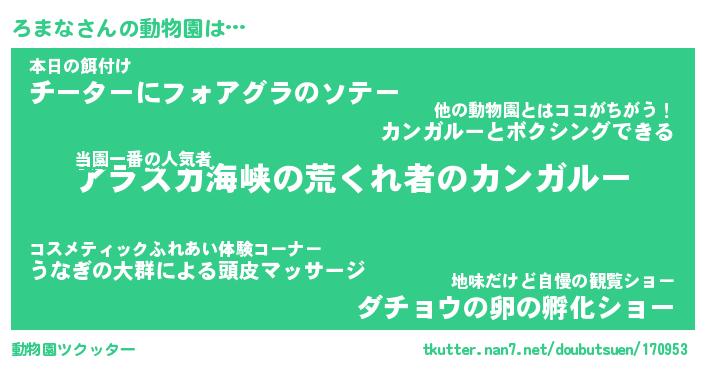 | 2回繰り返すあだ名 | 『ろまろま』『ろろまま』『ぬれぬれ』 |