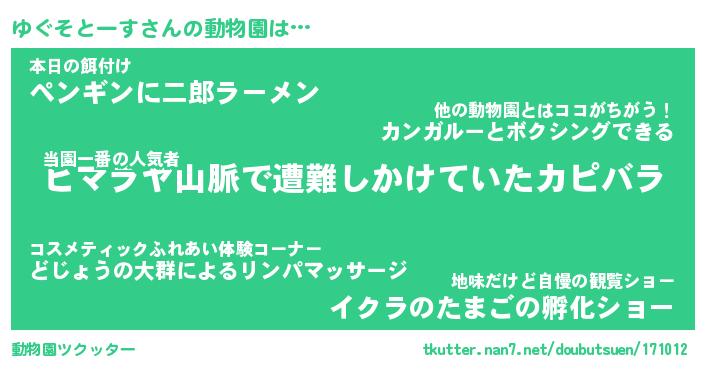 | ツイッター | ゆぐそとーすさんのツイッターID『namakemono_nyan』 |