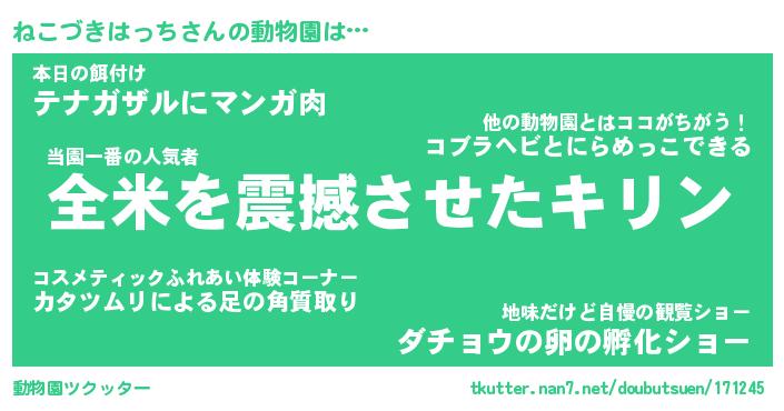 | ツイッター | ねこづきはっちさんのツイッターID『namakemono_kun』 |