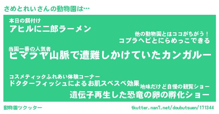 | 胡散臭い通販商品みたいなあだ名 | 『億万長者になれるブレスレット…その名も「さめとれい」』 |