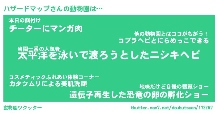| 胡散臭い通販商品みたいなあだ名 | 『億万長者になれるブレスレット…その名も「ハザードマップ」』 |