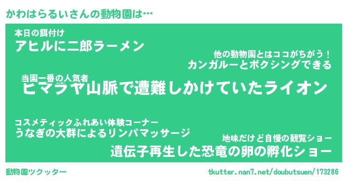 | 2回繰り返すあだ名 | 『かわかわ』『かかわわ』『ぬめぬめ』 |