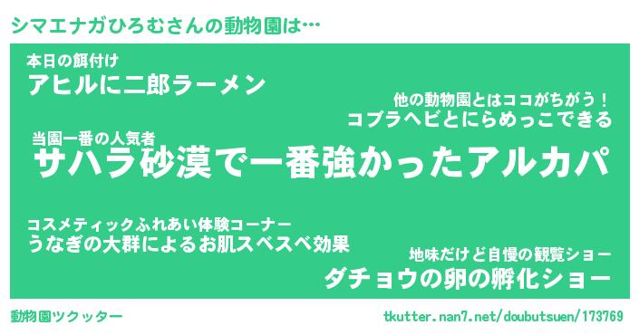 | 2回繰り返すあだ名 | 『シマシマ』『シシママ』『ぬらぬら』 |