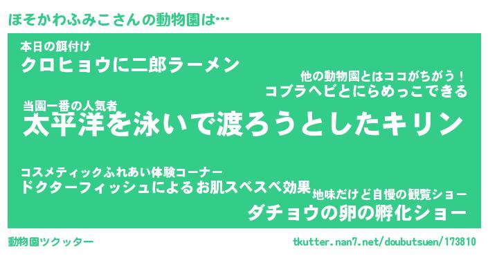 | 2回繰り返すあだ名 | 『ほそほそ』『ほほそそ』『ごほごほ』 |