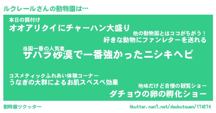 | 2回繰り返すあだ名 | 『ルクルク』『ルルクク』『けほけほ』 |