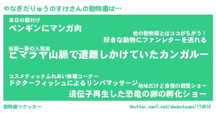 | ツイッター | やなぎだりゅうのすけさんのツイッターID『dendenmushi_man』 |