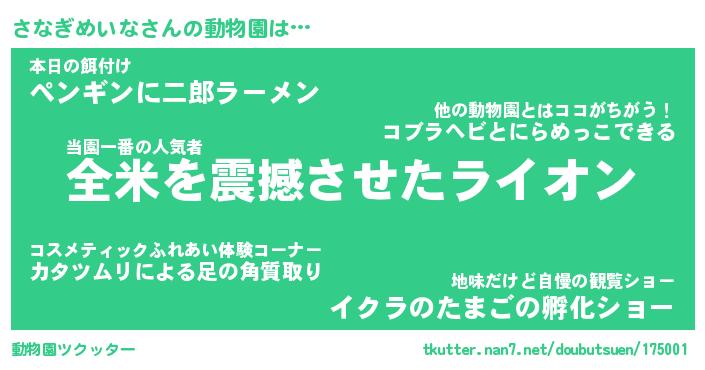 | 2回繰り返すあだ名 | 『さなさな』『ささなな』『いらいら』 |