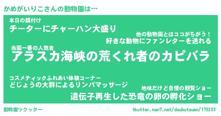 | 2回繰り返すあだ名 | 『かめかめ』『かかめめ』『ぬめぬめ』 |