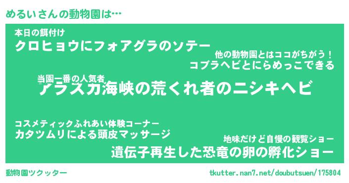 | 2回繰り返すあだ名 | 『めるめる』『めめるる』『くたくた』 |