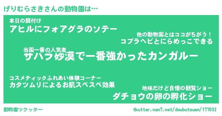 | 2回繰り返すあだ名 | 『げりげり』『げげりり』『うるうる』 |