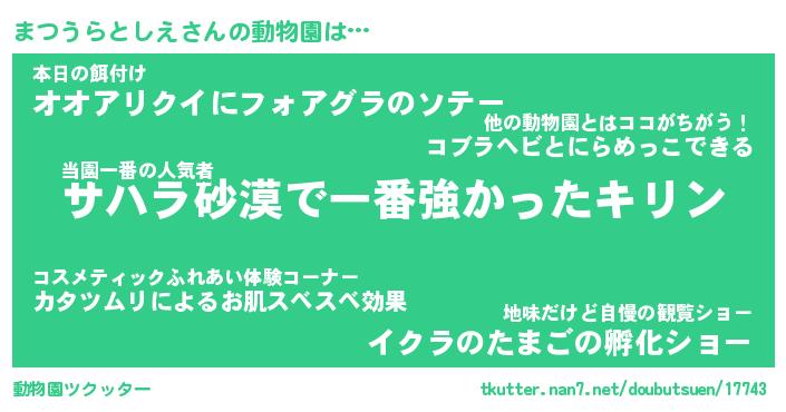 | 伝説のあだ名 | 『伝説のスナイパーまつうらとしえ』 |
