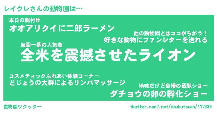 | 2回繰り返すあだ名 | 『レイレイ』『レレイイ』『にたにた』 |