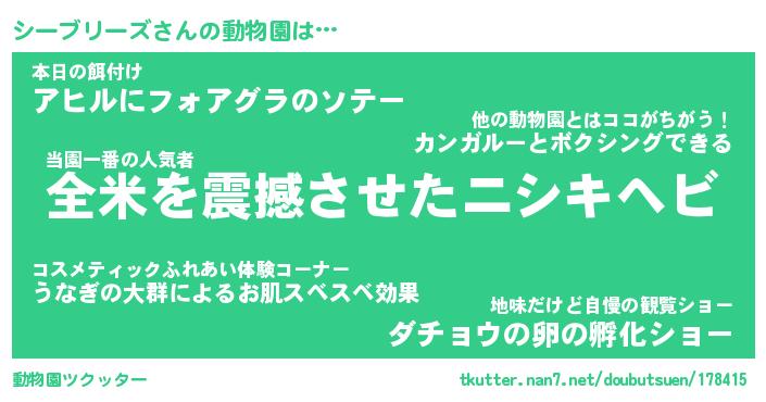 | 2回繰り返すあだ名 | 『シーシー』『シシーー』『うろうろ』 |