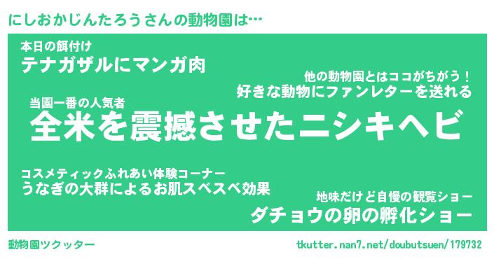 | 2回繰り返すあだ名 | 『にしにし』『ににしし』『おろおろ』 |