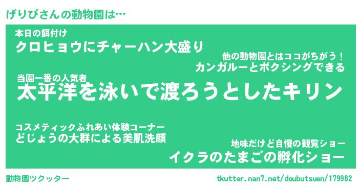 | 2回繰り返すあだ名 | 『げりげり』『げげりり』『おたおた』 |
