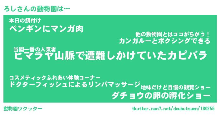 | 2回繰り返すあだ名 | 『ろしろし』『ろろしし』『にたにた』 |