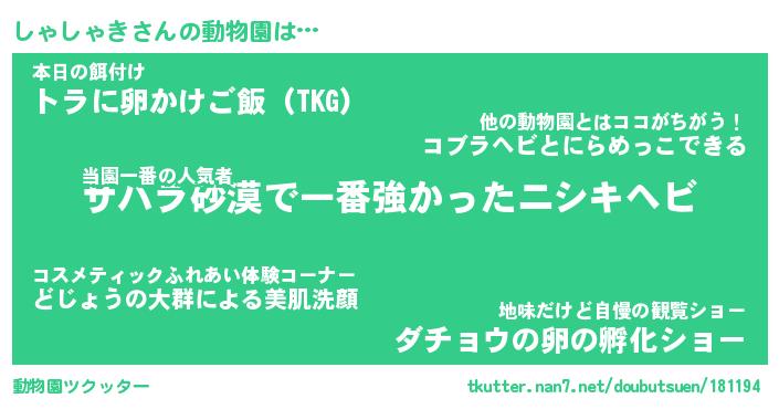 | 2回繰り返すあだ名 | 『しゃしゃ』『ししゃゃ』『おたおた』 |