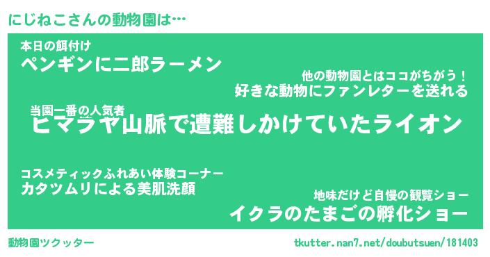 | 意味不明あだ名 | 『ペロリンにじねこ』『永久保存にじねこ』 |