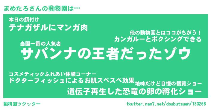 | 意味不明あだ名 | 『ペロリンまめたろ』『永久保存まめたろ』 |